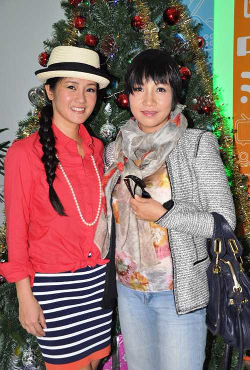 | Hồng Nhung và Mỹ Linh chụp ảnh cùng nhau tại tòa soạn VTC News. |