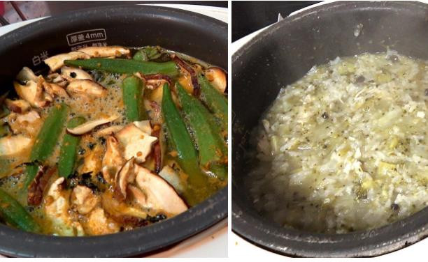 Món "cháo đầm lầy" chỉ cần 5 nguyên liệu chính là gạo, ức gà, đậu bắp, rong biển khô và nấm đông cô khô.