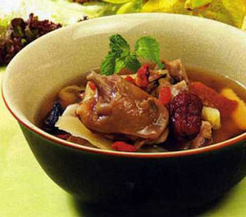 | Vịt hầm nhân sâm, đại táo, bạch quả rất tốt cho người bị thiếu máu, suy nhược. |