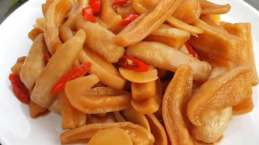 Củ cải ngâm tương giòn, đậm đà, có thể ăn cùng cơm trắng hoặc cháo.