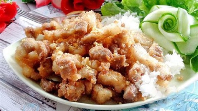 Món ngon mỗi ngày: Thịt lợn chiên xóc tỏi giòn, thơm.