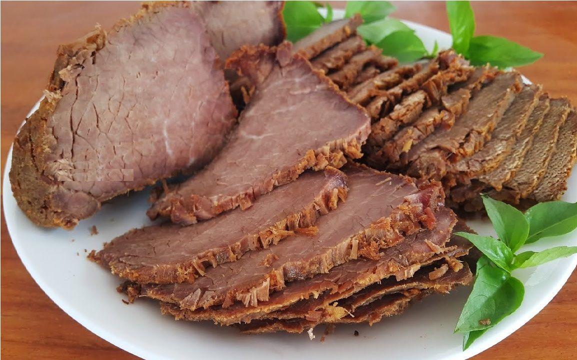 - Gắp thịt ra đĩa, thái lát mỏng hoặc để xé từng miếng như bò khô. Thịt có thể để tủ lạnh và ăn trong vòng 1 tuần. Có thể làm đồ nhắm hoặc ăn cùng cơm đều chuẩn vị.