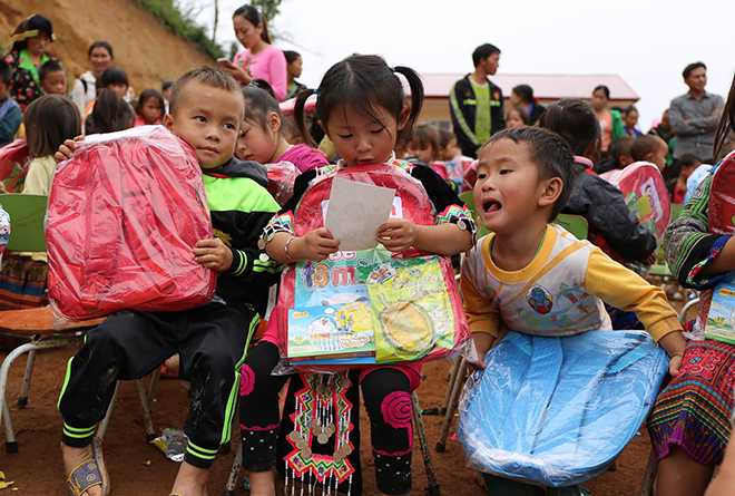 Các em nhỏ hạnh phúc khi được tặng những món quà ý nghĩa