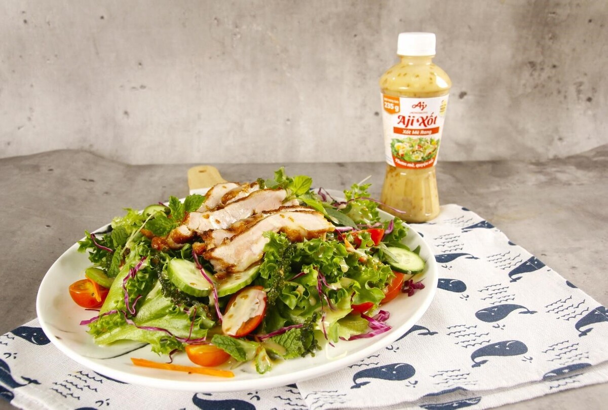 Các loại rau, củ tươi ăn sống hoặc hấp, luộc thường thanh mát nhưng chưa đủ bắt vị. Với Xốt mè rang Aji-Xốt, các món rau tươi sống hay luộc, hấp sẽ không còn nhàm chán, đơn điệu. Các món gỏi cuốn cũng sẽ trở nên hấp dẫn hơn khi được ăn kèm Xốt mè rang sánh quyện.