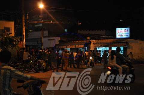 Người dân vây kín quán cơm nơi xảy ra vụ án mạng để xem cơ quan chức năng xử lý hiện trường.