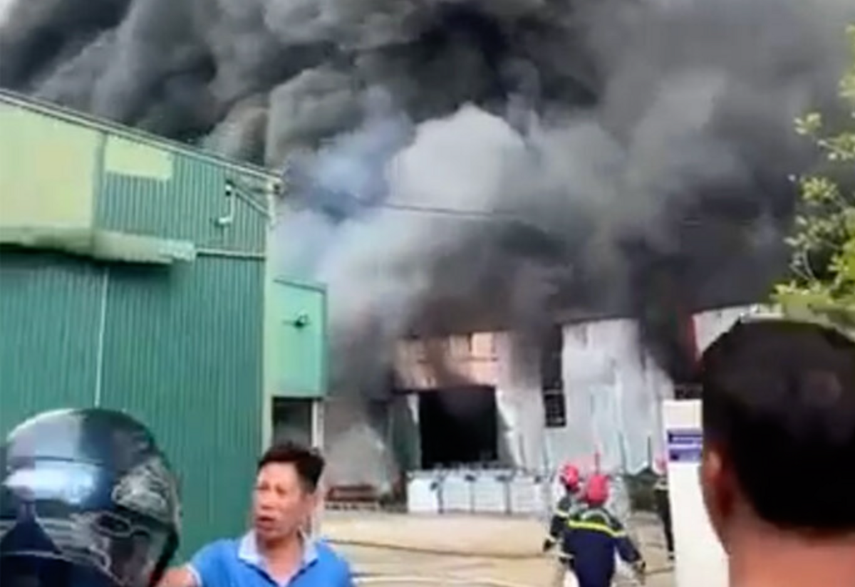 Khi đội phòng cháy khu vực 2 đến nơi, đám cháy và khói đen bao trùm phần lớn khu vực trong nhà xưởng rộng khoảng 1.500m2.