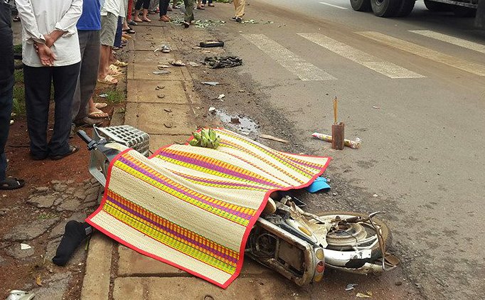 Cú tông mạnh khiến em Hoàng cùng cặp sách văng xuống đường, tử vong tại chỗ, xe đạp điện hư hỏng nhẹ. Ngay sau khi xảy ra vụ tai nạn, tài xế lái xe tải đã rời khỏi hiện trường.