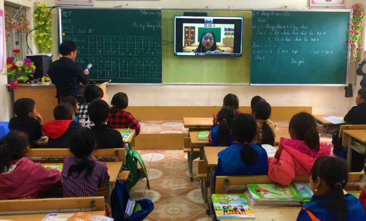 Một giờ học Tiếng Anh của học sinh lớp 3 tại huyện Mèo Vạc với sự hỗ trợ việc dạy trực tuyến bởi thiếu hụt giáo viên.