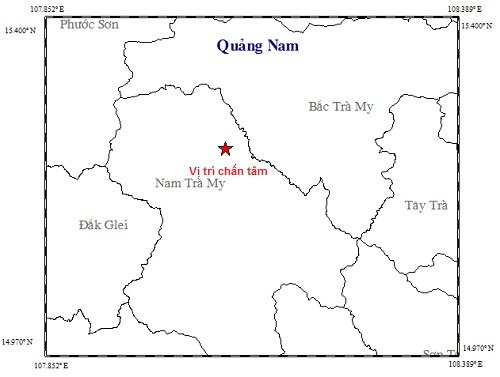 Theo đó, vào khoảng 9h32 cùng ngày, trận động đất xảy ra ở huyện Bắc Trà My có cường độ 2,6 độ richter xảy ra tại vị trí có tọa độ 15,314 độ vĩ Bắc và 108,09 độ kinh Đông với độ sâu chấn tiêu khoảng 10,8km.
