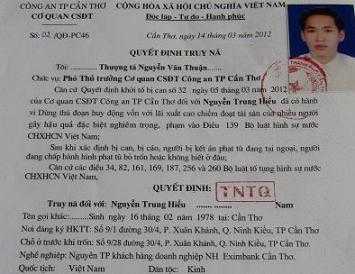 Hiếu bị truy nã toàn quốc. Ảnh: Diễm Hằng