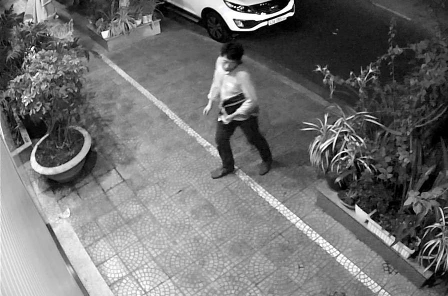 Người đàn ông mang quốc tịch Hàn Quốc lảng vảng trước nhà của ông Nguyễn Phúc Linh rồi đột nhập vào xe ô tô. (Ảnh: Trích xuất từ camera)