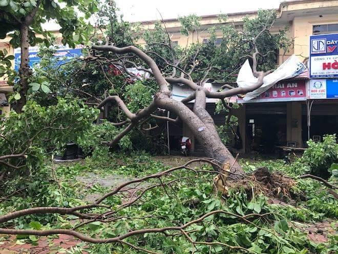 Bão số 2 khiến cây xanh bật gốc đè lên nhà dân ở TP Vinh (Nghệ An).