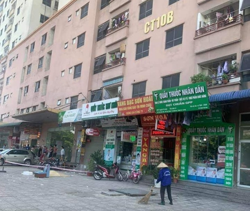 Theo đó, vào thời điểm trên, một số người dân sinh sống tại tòa CT10C, CT10B khu đô thị Đại Thanh bất ngờ nghe thấy tiếng động lớn từ khu sân chơi chung dưới chân tòa nhà. Khi chạy ra kiểm tra, mọi người hoảng hồn phát hiện một phụ nữ đã tử vong nằm trên nền gạch.