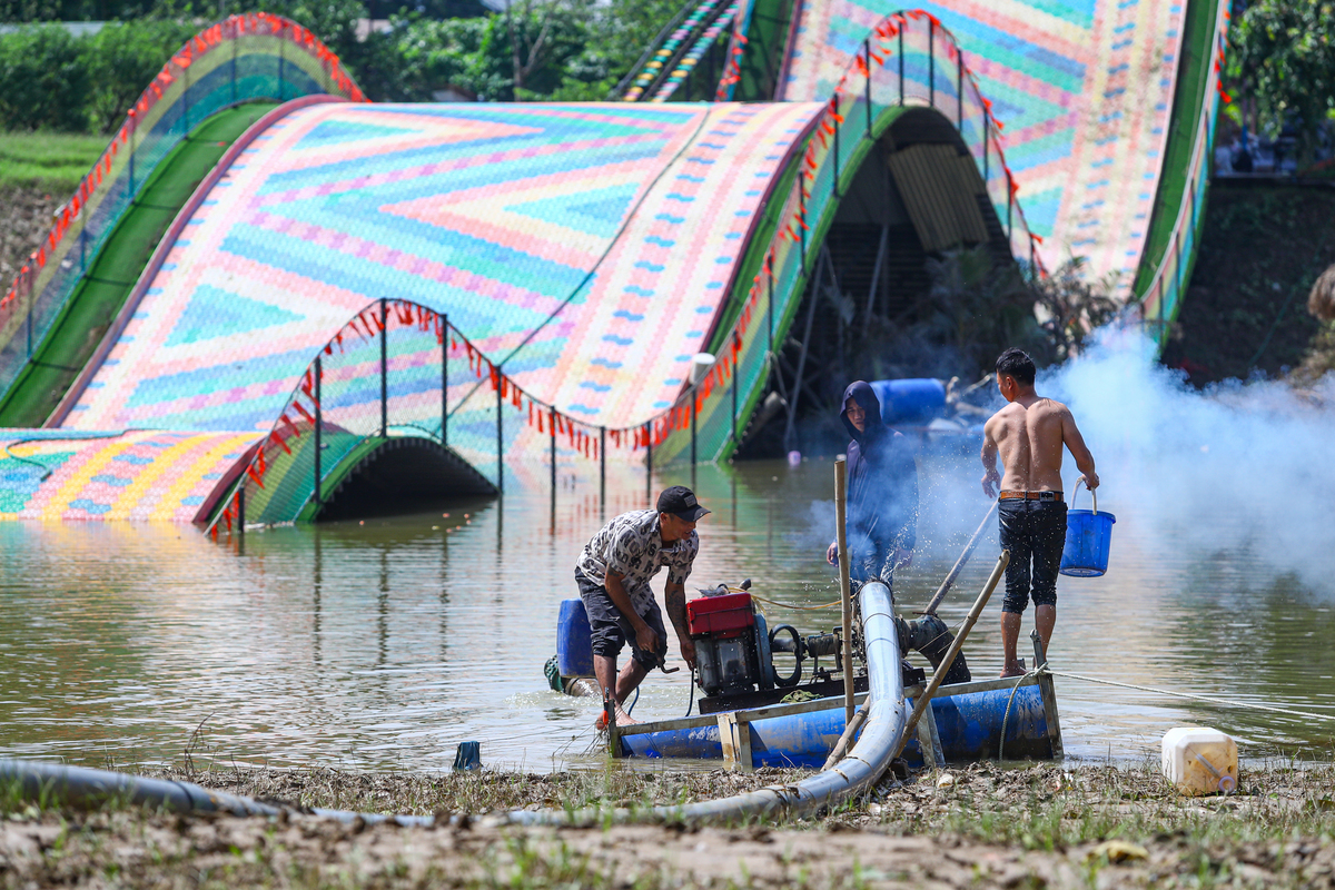 Anh Hùng kể thêm, ngay sau khi nước sông Hồng rút, anh cùng hàng chục anh em bắt tay dọn dẹp. Sau gần một tuần, mới chỉ hoàn thành khoảng 30% khối lượng công việc, dự kiến phải mất khoảng 2 tháng nữa mới dọn xong.