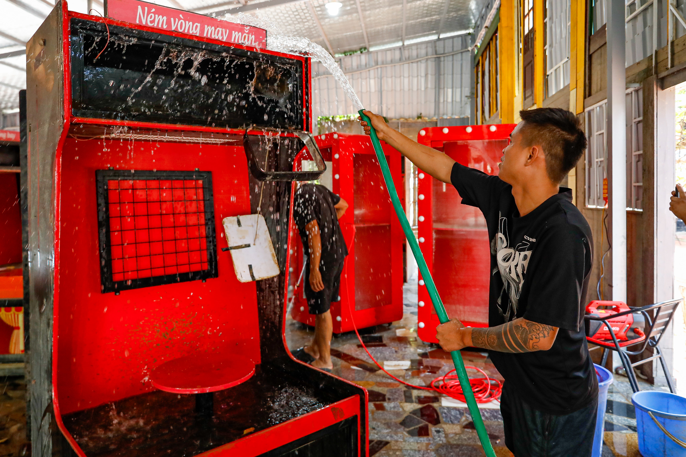 Anh Nguyễn Nhật Thành, nhân viên quán đồ uống ở bãi đá sông Hồng, cho biết: “Ngày 7-8/10, ảnh hưởng của bão, nước sông Hồng dâng rất nhanh, cửa hàng chỉ kịp di dời những vật dụng giá trị cao đến nơi an toàn, còn cốc chén, bàn ghế đều bị nước cuốn trôi. Hiện chúng tôi đã dọn dẹp xong khu vực quầy pha chế, còn bếp vẫn đang được rửa dọn để sớm phục vụ khách trở lại. Hai năm liên tiếp bị ngập úng khiến cửa hàng thiệt hại nặng nề về kinh tế”.