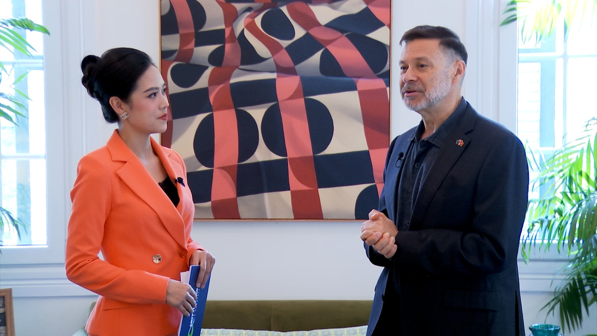 Đại sứ Marc E Knapper (phải) chia sẻ về những cột mốc lịch sử giữa Việt Nam và Mỹ trong năm 2023.