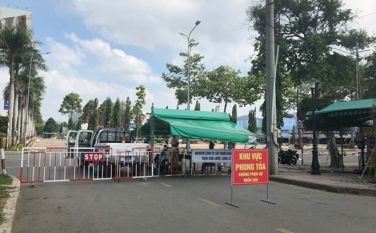 Lực lượng chức năng phong toả khu vực chợ Bà Rịa. (Ảnh: Khuất Nguyên)
