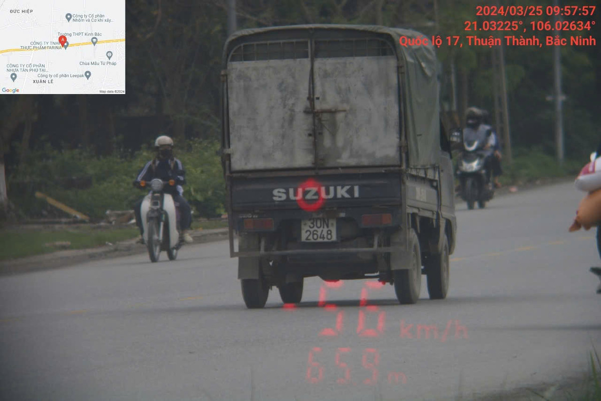 Ô tô chạy quá tốc độ ở Quốc lộ 18, đoạn qua thị xã Quế Võ, Bắc Ninh.