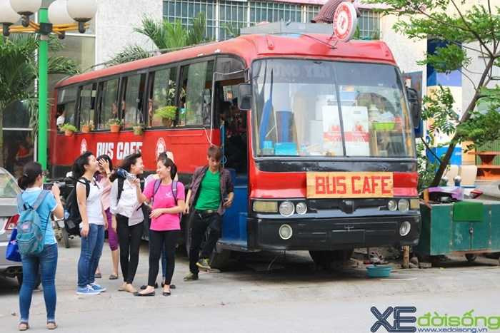 Chiếc xe buýt 45 chỗ được treo biển Bus Cafe và đã được đầu tư khoảng 1 tỷ đồng để có thể 'lột xác' thành quán cafe bình dân cho giới trẻ Hà thành
