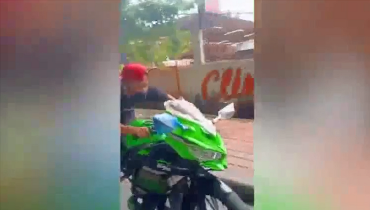 Cảnh thanh niên lái môtô phân khối lớn có động cơ chạy bằng 'cơm' khiến người xem phì cười.