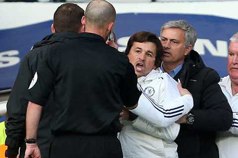 Chưa đầy 1 phút sau, trợ lý của Jose Mourinho, Rui Faria lừ lừ tiến ra phía đường pitch để nói chuyện với trọng tài. Chẳng hiểu anh chàng này nói những gì với trọng tài thứ tư và trọng tài chính Mike Riley, chỉ biết rằng kết quả là Faria đã vô cùng bị kích động.