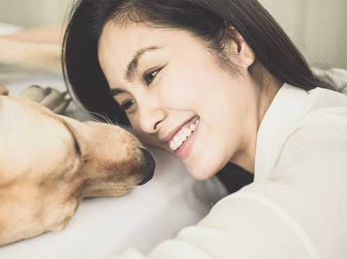 'Ngọc nữ của điện ảnh Việt' thường xuyên đăng tải hình ảnh cún cưng trên trang cá nhân. Cô gọi chúng là 'Con yêu của mẹ' và luôn thoải mái vui đùa, tắm táp và thậm chú ngủ chung với chó cưng.