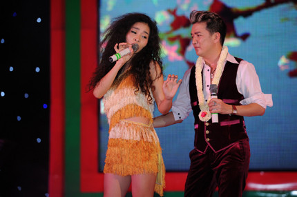Đã chơi thì chấp nhậnĐàm Vĩnh Hưng và thí sinh Xuân Nghi song ca (ảnh: Lý Võ Phú Hưng)
