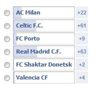 Theo kết quả bình chọn trên mạng xã hội facebook, phần lớn những người tham gia muốn thấy MU đương đầu với Real Madrid ngay vòng 1/8. Đứng thứ nhì về sự ưa thích là đội bóng cùng ở Vương quốc Anh, Celtic. Còn xếp thứ ba là AC Milan.