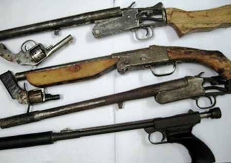 | 6 khẩu súng, 1 thỏi mìn bị thu giữ. |