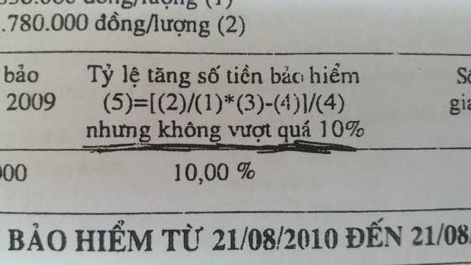 Trong thông báo của bảo hiểm Manulife Việt Nam cũng ghi rõ tỷ lệ tăng số tiền bảo hiểm không được vượt quá 10%. Nhưng không hiểu vì lý do "độc quyền" hay được "đặc cách" của bảo hiểm Manulife Việt Nam mà số tiền hàng năm ông T. đóng cho bảo hiểm Manulife không chỉ vượt quá 10% mà vượt tới trên 80%?