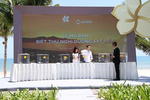 (VTC News) - Ngày 19/9/2015, Tập đoàn Sun Group tổ chức lễ mở bán các biệt thự sát biển thuộc Tuyệt tác nghỉ dưỡng Premier Village Danang Resort. Tiếp nối thành công buổi mở bán đầu tiên ngày 8/8/2015, nhiều khách hàng đã đặt cọc tín nhiệm để tham gia chương trình bốc thăm quyền mua những căn biệt thự sát biển có số lượng hạn chế.