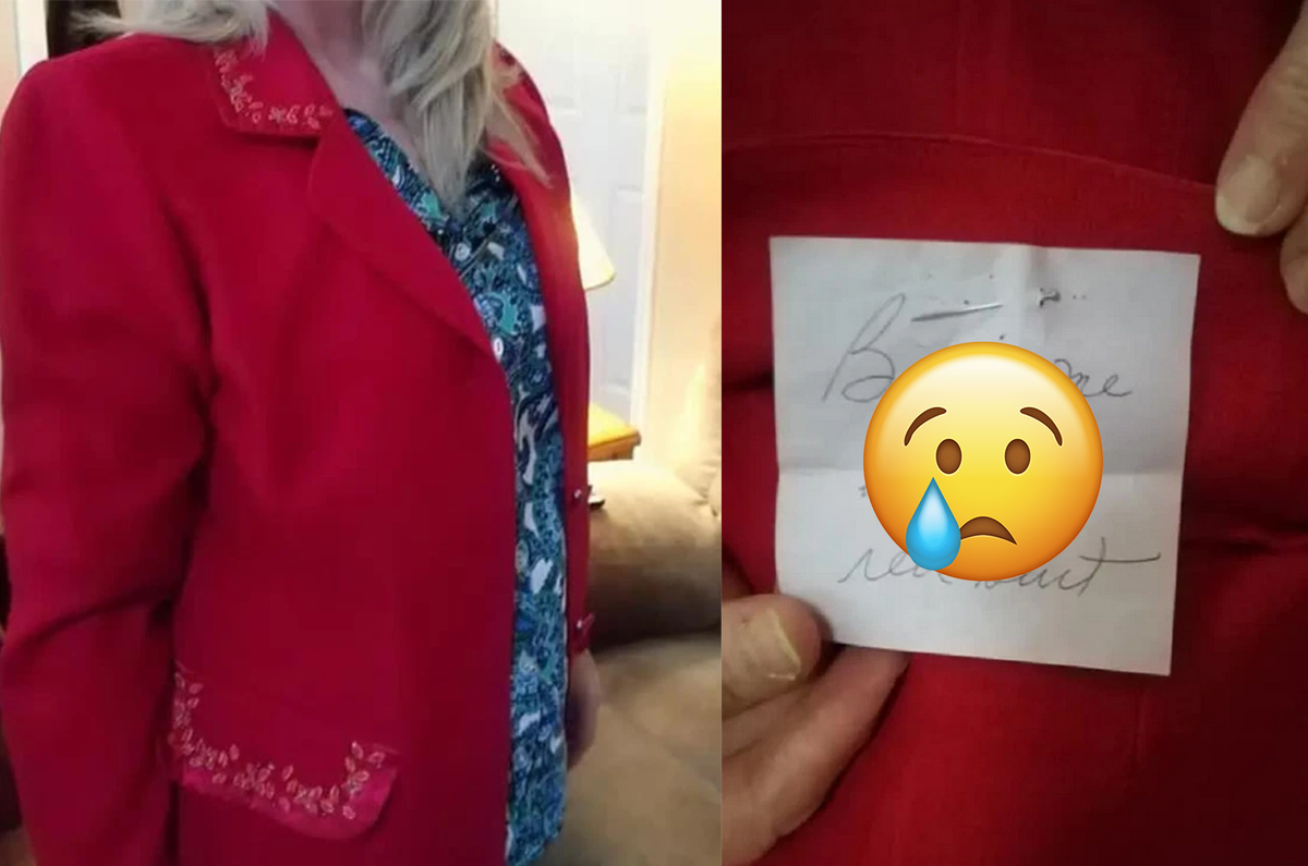 Câu chuyện này được chính chủ chia sẻ trên mạng xã hội với nội dung: "Tôi mua chiếc áo khoác màu đỏ đáng yêu này trong cửa hàng bán đồ từ thiện JoAnn và tìm thấy một mảnh giấy ghi chú trong túi áo".
