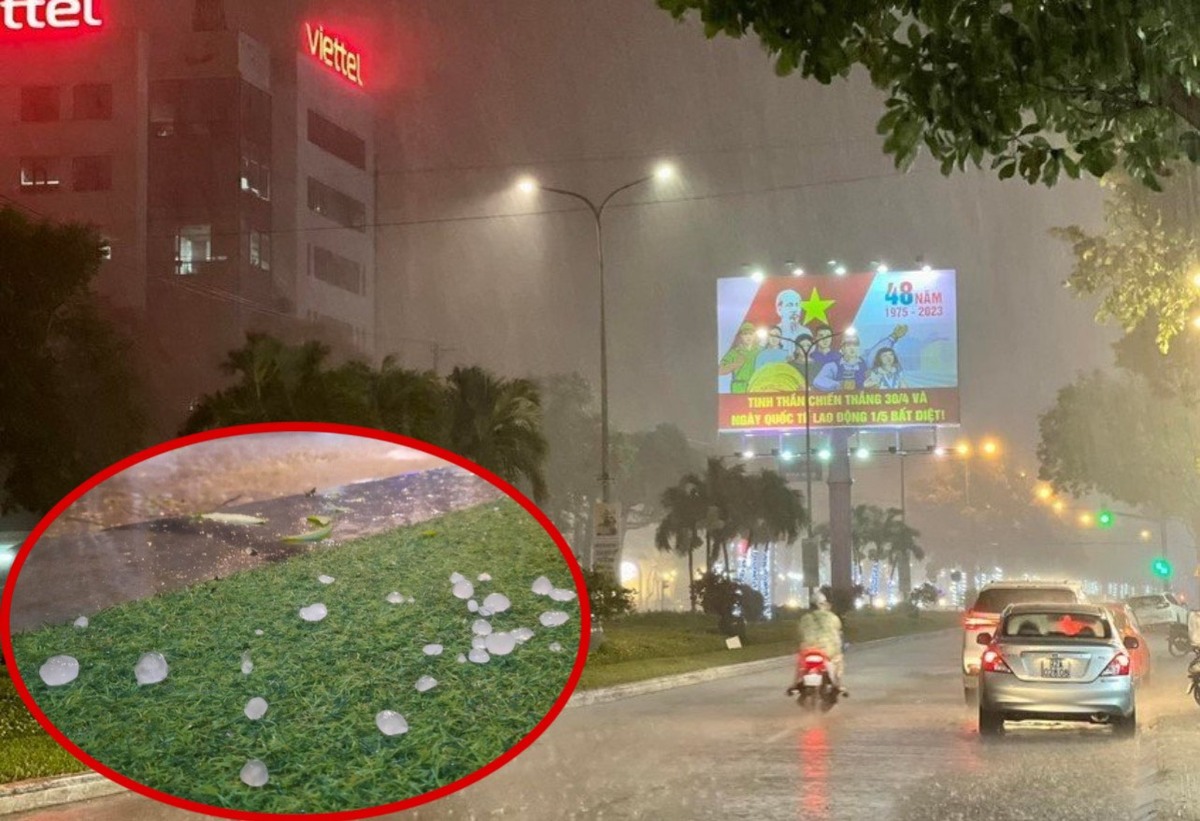Mưa đá trút xuống TP Tam Kỳ sau nhiều ngày nắng nóng.