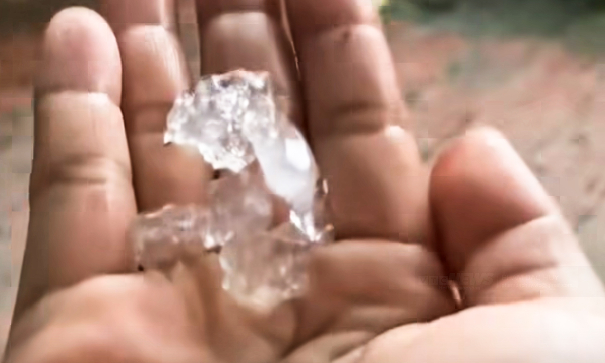 Những viên đá to được người dân ở Phú Thọ nhặt lại sau cơn mưa đá. (Ảnh: Vũ Tuấn)