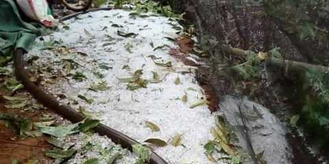 Mưa đá trút xuống ồ ạt khiến nhiều người hoang mang và nhiều diện tích hoa màu của người dân bị tàn phá.