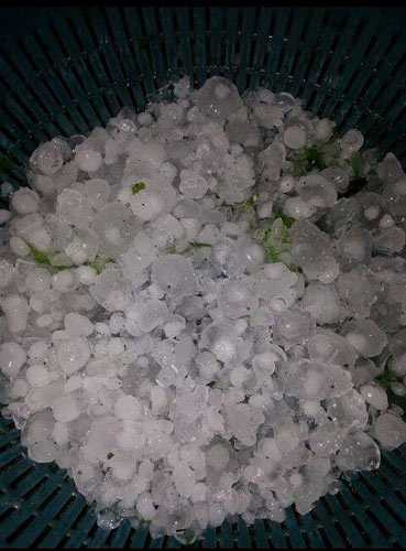 | Những viên đá có kích cỡ lớn trong trận mưa đá, đã gây thiệt hại lớn cho nhiều nhà dân. Ảnh: Petrotimes |