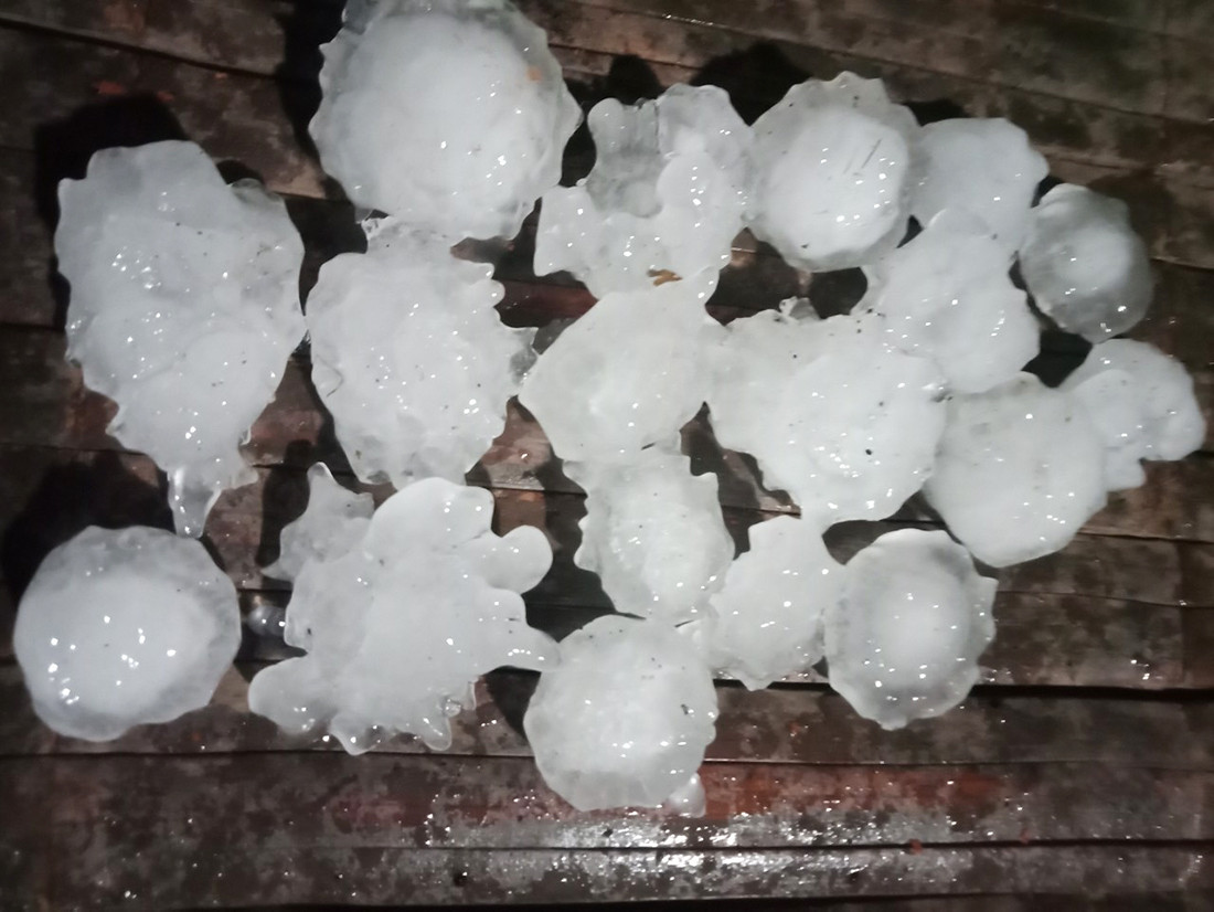 Mưa đá to bằng nắm tay trút xuống xã Chiềng Chăn trong tối 2/5.