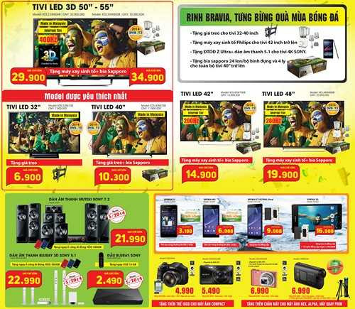 - Tặng 1 thùng bia Sapporo khi mua TV Bravia từ 40” trở lên.