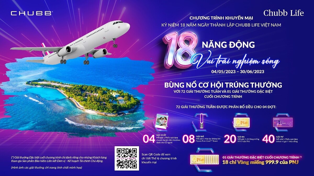 Hiểu rõ điều ấy, Công ty TNHH Bảo hiểm Nhân thọ Chubb Việt Nam không ngừng gởi trao những tấm lá chắn toàn diện cho các gia đình Việt, cùng với đó là cơ hội nâng tầm chất lượng sống cho Khách hàng. Mới đây nhất, nhằm đánh dấu hành trình 18 năm tại Việt Nam, Chubb Life triển khai chương trình khuyến mại (CTKM) “18 năng động – Vui trải nghiệm sống”.