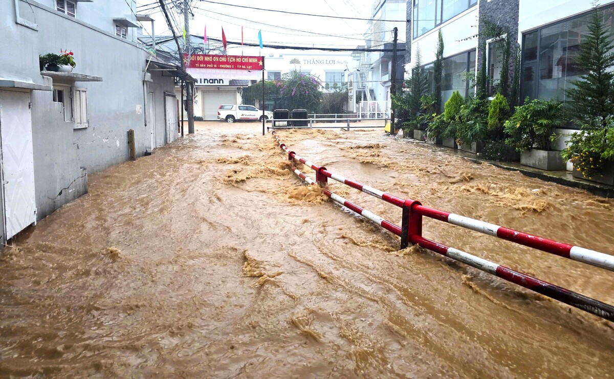 Đường phố Đà Lạt chìm trong dòng nước đục ngầu.