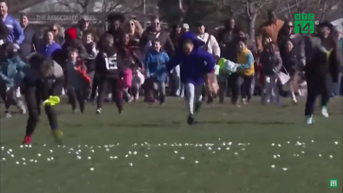 Trẻ em đua nhau giành lấy hàng chục nghìn chiếc kẹo dẻo được thả từ trực thăng tại một công viên ngoại ô Detroit (Mỹ) nhân dịp Lễ Phục sinh.
