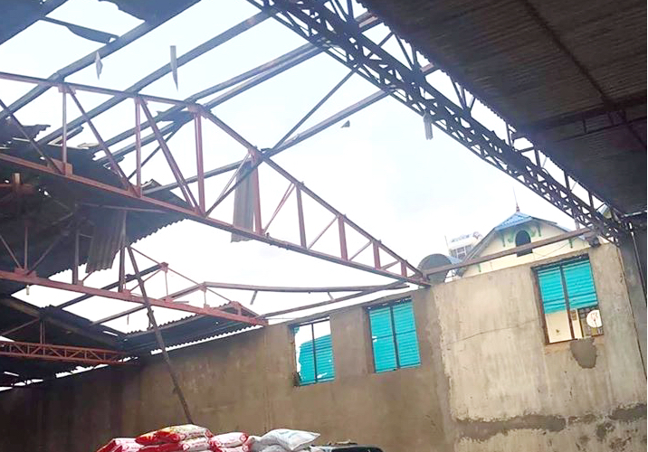 Nhà xưởng, kho hàng tốc mái gây nhiều thiệt hại về tài sản.