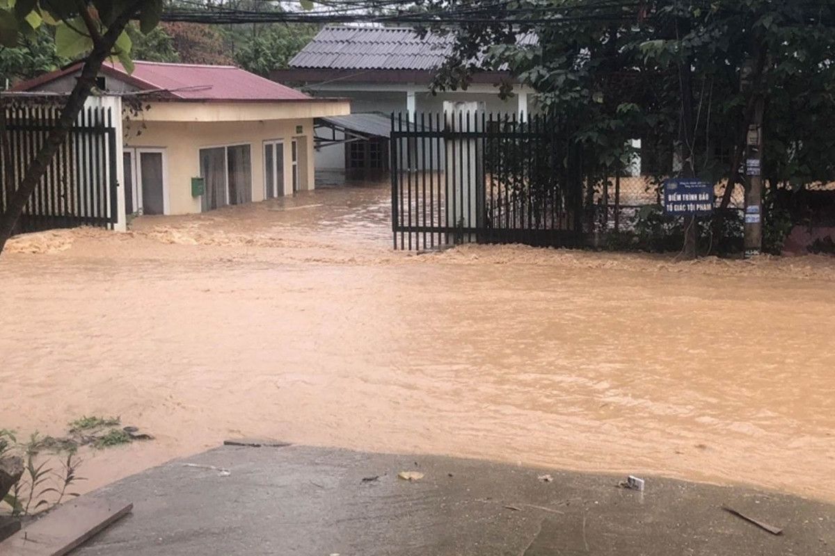 Trụ sở Đội kiểm lâm Cơ động đóng tại xã Âu Lâu bị ngập sâu trong nước.