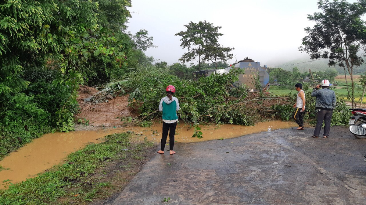 Sự cố sạt lở đất làm một đoạn đường quốc lộ bị vùi lấp, gây ách tắc giao thông.