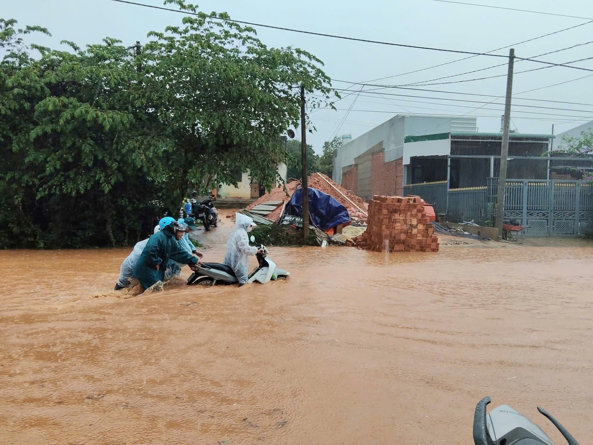 Trước đó, rạng sáng 4/12/2025, nước lũ kết hợp mưa lớn từ tối 3/12 làm nước dâng cao trên quốc lộ 1, khu vực gần ngã ba Gộp, xã Hồng Sơn (Lâm Đồng) khiến giao thông nơi đây gặp nhiều khó khăn. Một số dải phân cách trên quốc lộ 1 bị nước chảy mạnh xô lệch.