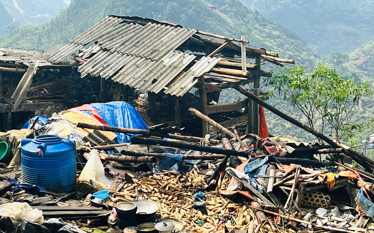 Mưa dông ở xã Sùng Trái đã giật sập nhiều mái nhà. (Ảnh: Đ.X.)