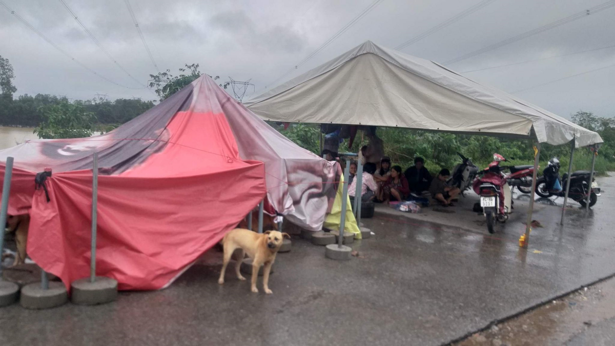 Người dân dựng tạm lều bạt tránh lũ bên đường (Ảnh: Phan Ấn).