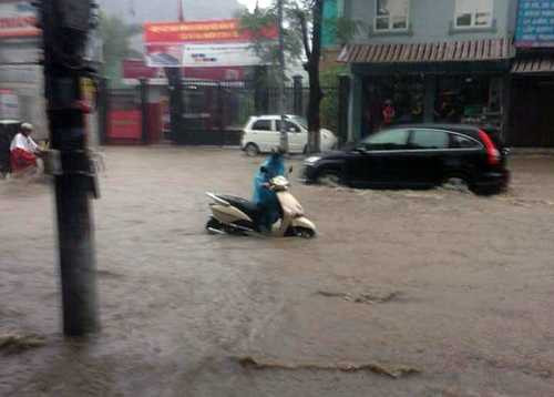 | Mưa lớn khiến nhiều tuyến phố trên địa bàn TP Hạ Long bị ngập úng, ảnh hưởng lớn đến việc di chuyển của các phương tiện và người dân tham gia giao thông |
