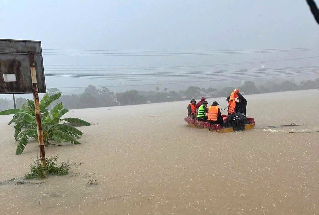 Lực lượng chức năng huy động nhân sự để hỗ trợ người dân khu vực ngập sâu.
