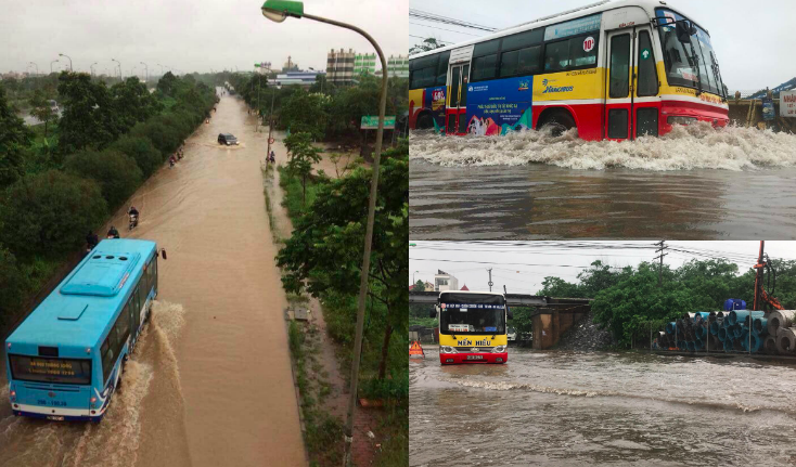 Xe buýt 'bơi' giữa Đại lộ Thăng Long.